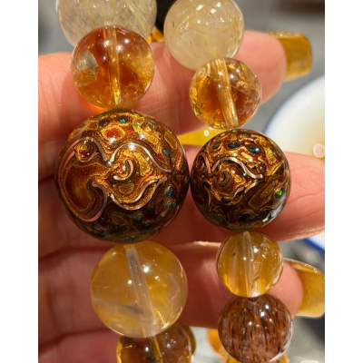 Pure natural lacquer golden phoenix wealth-attracting gold glue flower rice beads bracelet versatile brightening gift