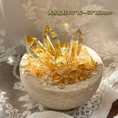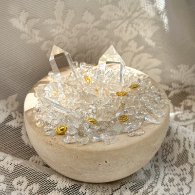 Natural clear quartz demagnetising energy bowl crystal column, geode stone, office and home desktop decoration