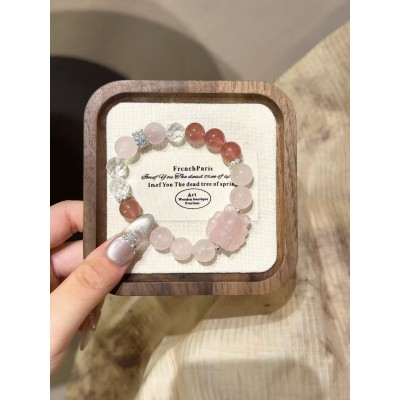 Strawberry Quartz Powder Crystal Nine-Tailed Fox Bracelet