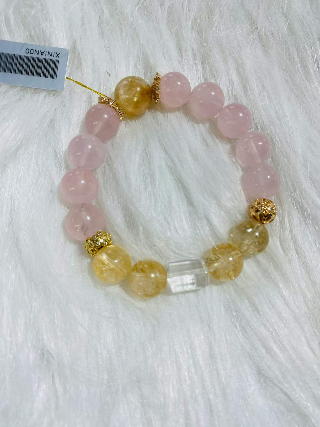 天然粉水晶單圈圓珠手鍊