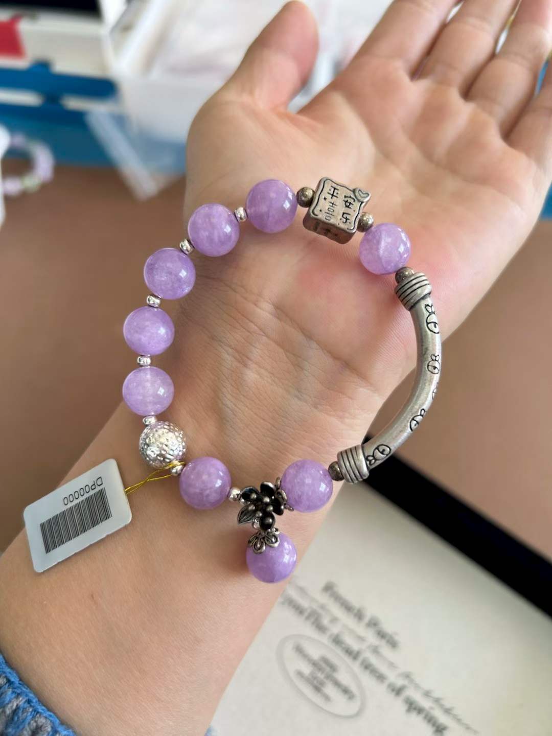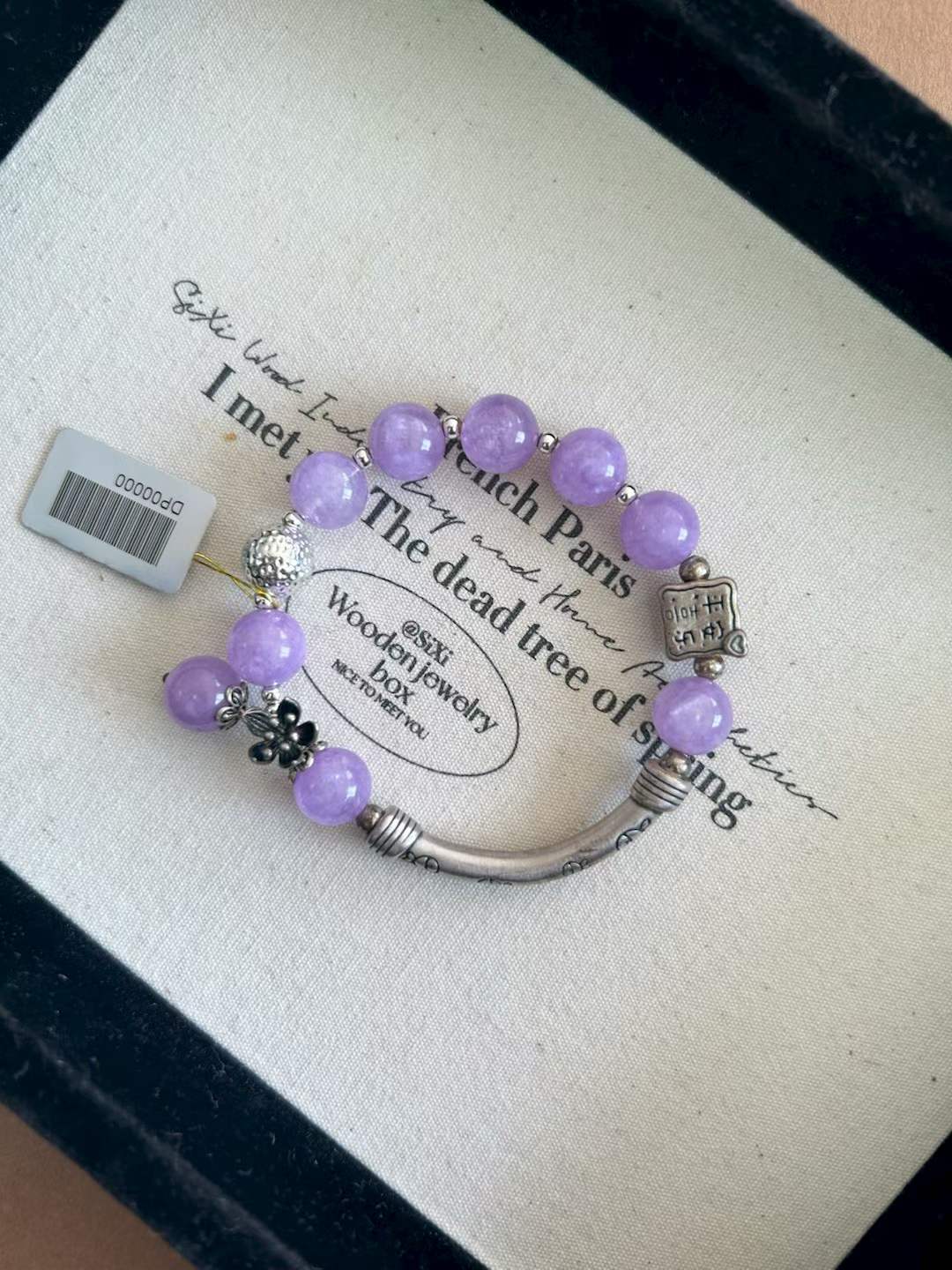 Natural Lavender Amethyst Fairy Bracelet Original Design 999 Sterling Silver Half Bangle Niche Lucky Money Bag Gift