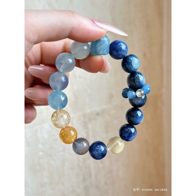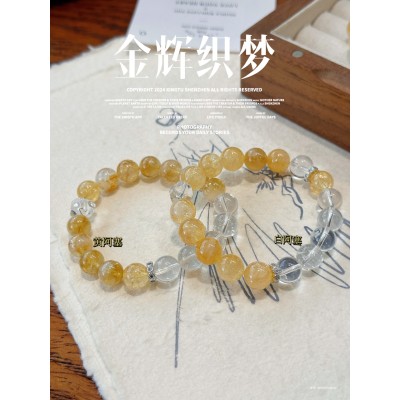 Natural yellow azurite crystal bracelet with a high-end feel, cube white crystal bracelet, gift for female friends