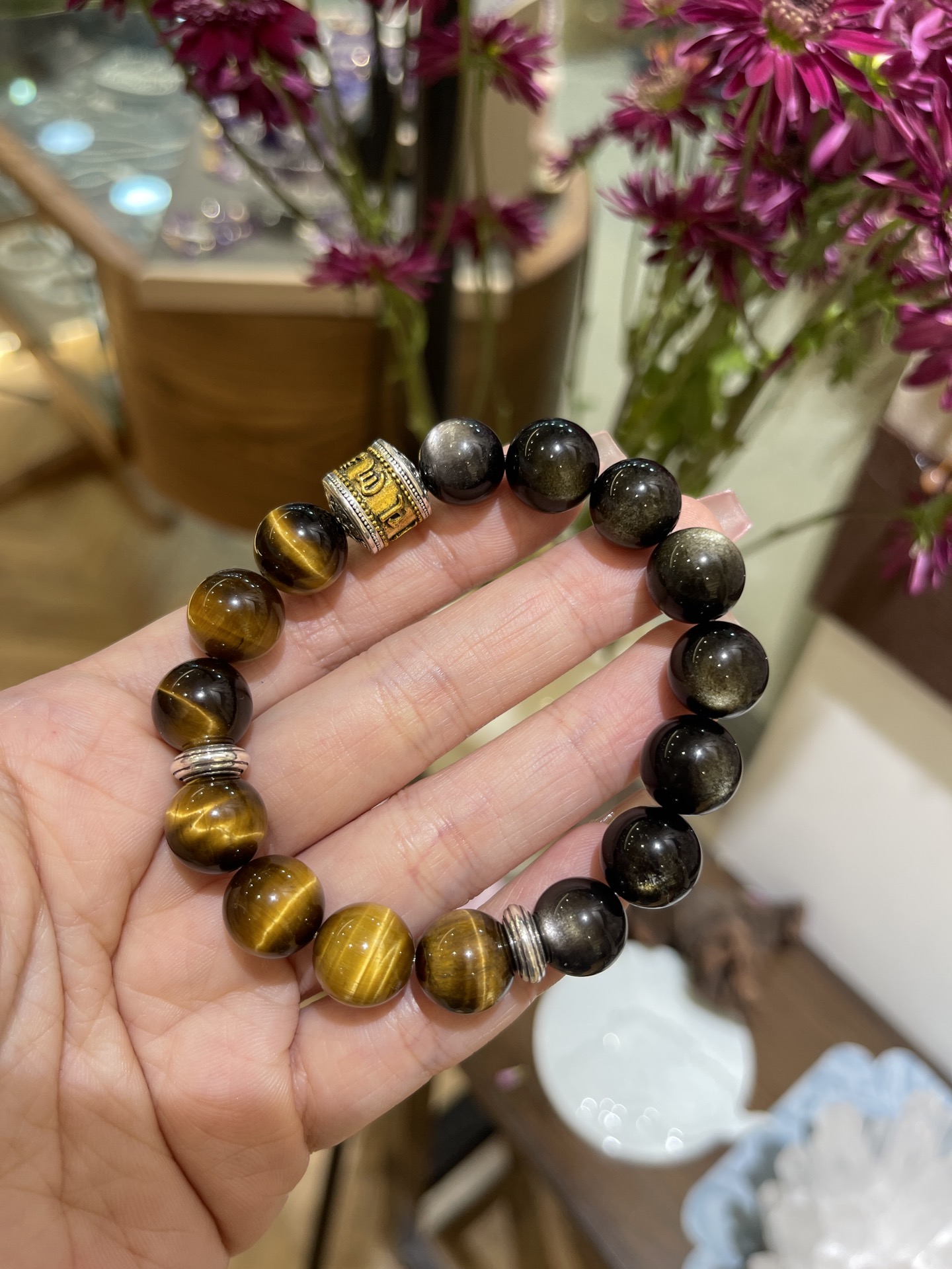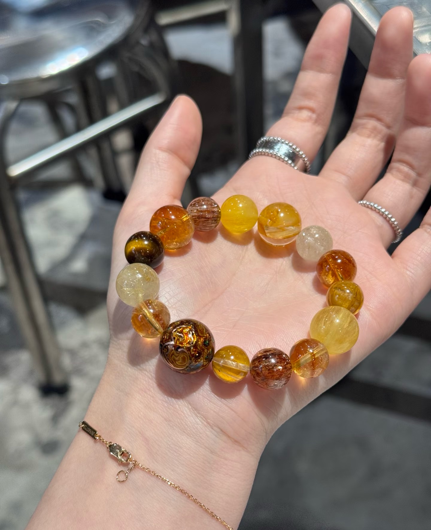 Pure natural lacquer golden phoenix wealth-attracting gold glue flower rice beads bracelet versatile brightening gift