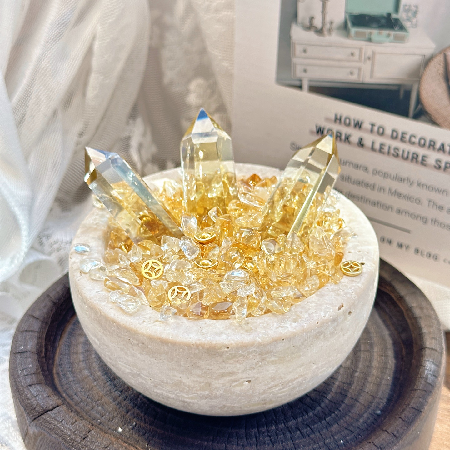 Natural Yellow Crystal Wealth Bowl Ornament for Home Energy, Hallway, Office Decoration, Opening and Housewarming Gift