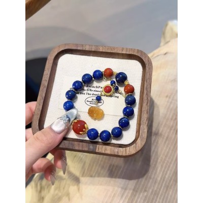 Lapis lazuli and red agate bead pendant accessory, vintage bracelet for girlfriends, high-end jewellery for women