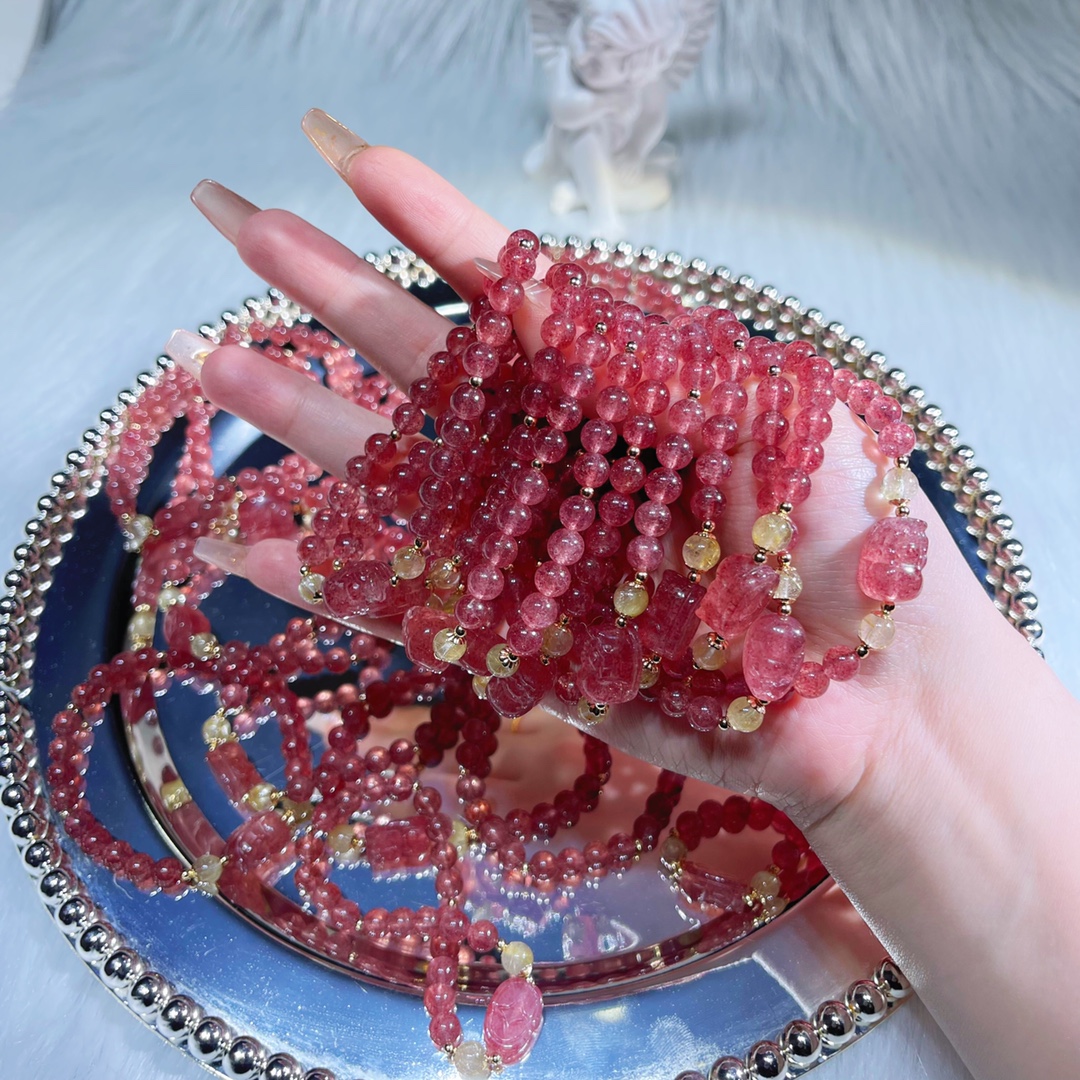 🍓Strawberry Crystal Attracts romance, enhances relationships, increases popularity, improves business skills, protects love, aids studies, boosts exam luck and memory. Aquamarine Prevents setbacks, soothes and stabilises emotions~~ Paired with Wealth Pixiu Brings in wealth💰 income only