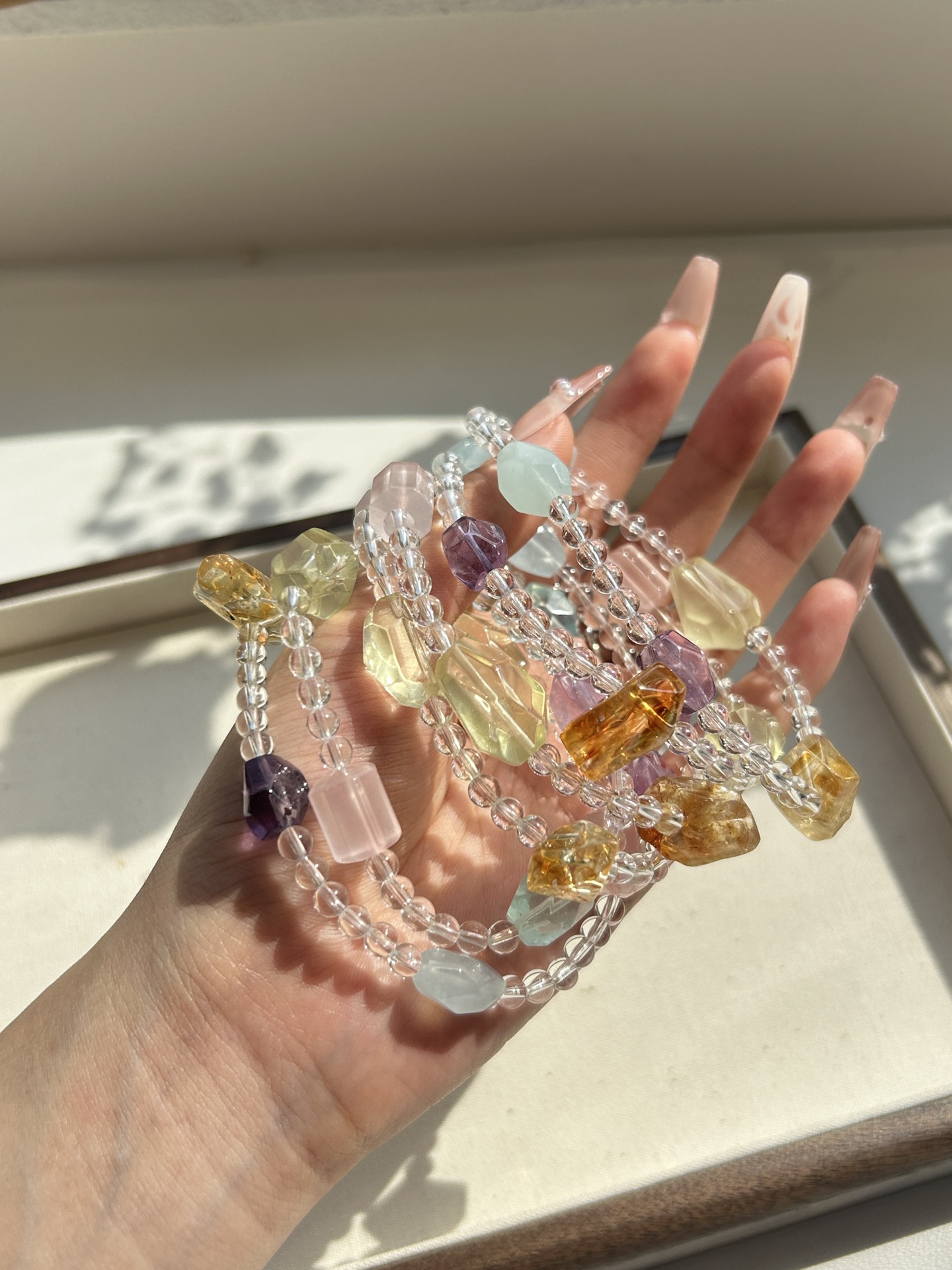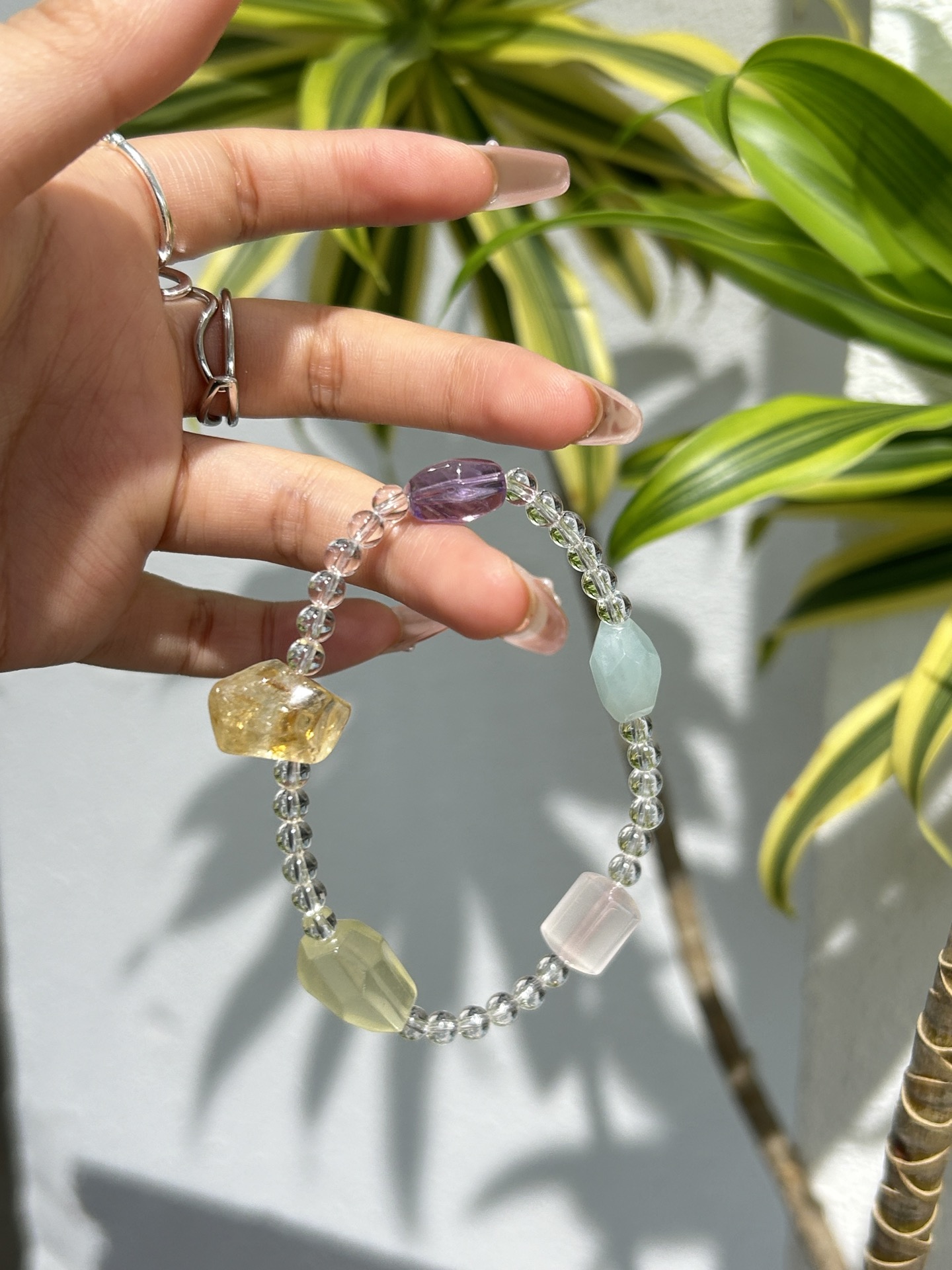 Lemon Crystal: Boosts additional and primary wealth|Rose Quartz: Improves interpersonal relationships, increases charm with the opposite sex|Aquamarine: Enhances confidence|Citrine: Attracts wealth and personal fortune|Amethyst: First choice for career/studies