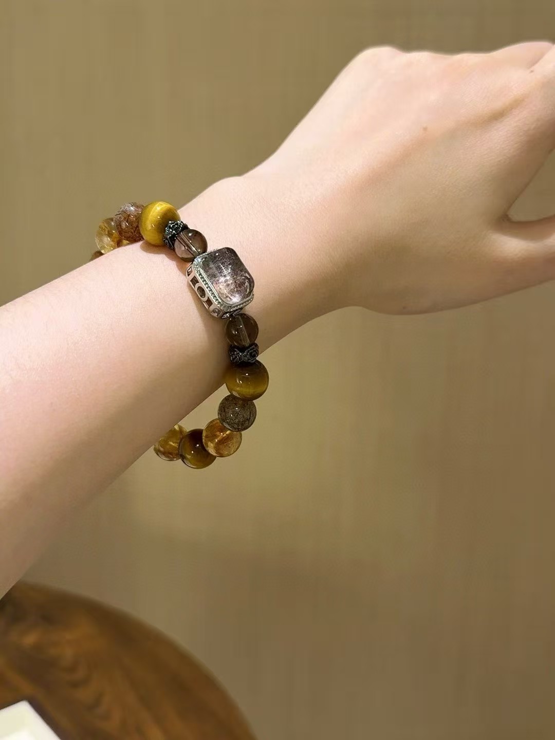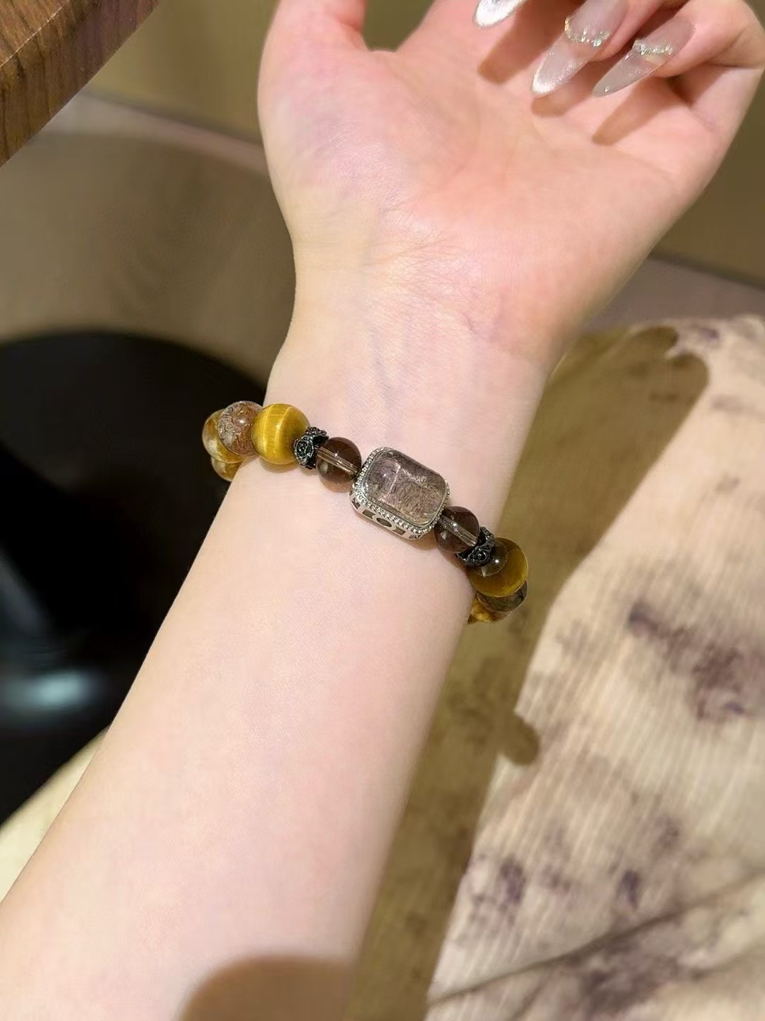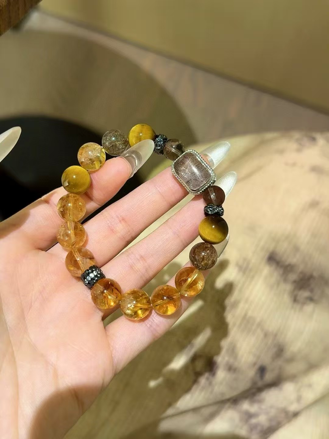 Material: Yellow tiger's eye, yellow crystal, black gold super, smoky quartz, four-season phantom