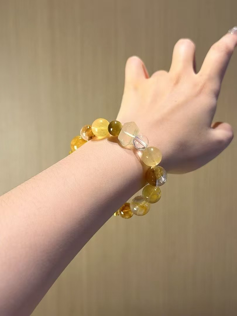 Size*Material: Yellow Jade Flower 14mm, Yellow Jade Flower 10.5-11mm, Yellow Fluorite 12.5mm, White Crystal 10mm, Golden Tiger Eye 10mm, Yellow Crystal 13.5mm, Yellow Crystal Double Terminated, Golden Tiger Eye Bead 4mm