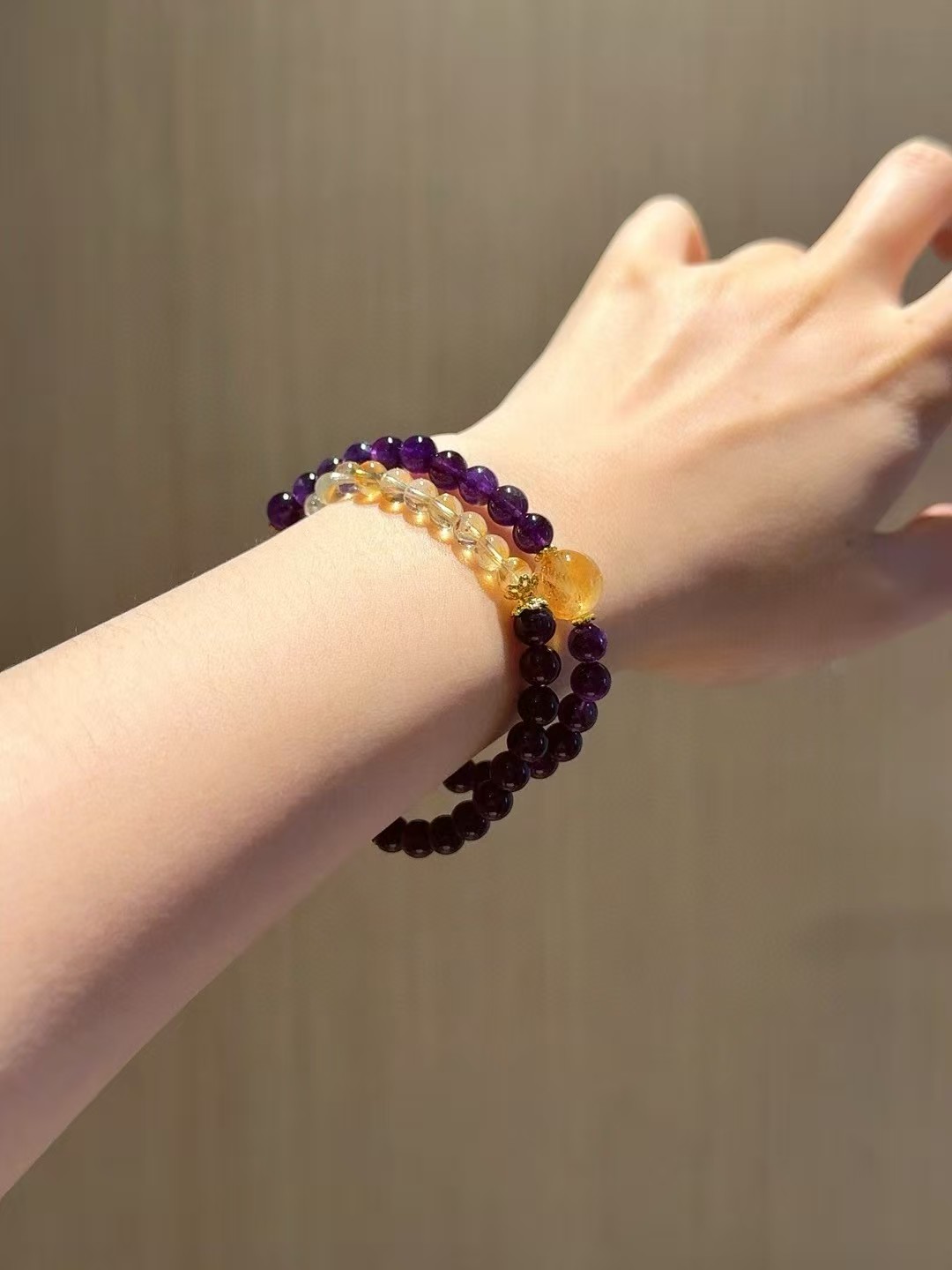 This multi-circle design is really a bonus! The combination of amethyst and yellow tower crystal is a typical ‘rational × abundance’ energy mix; purple represents spirituality and thinking, gold symbolizes confidence and prosperity. Together, they exude elegance in calmness, making every decision clearer and every day smoother. -