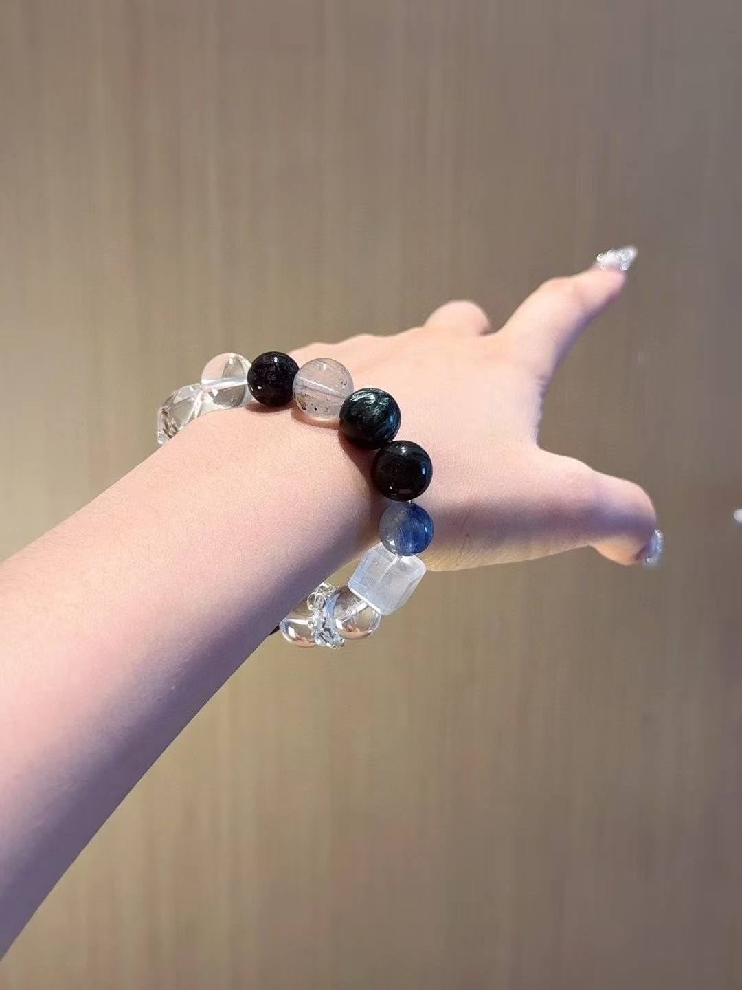 Size * Material: Aquamarine approx. 13mm, White Crystal approx. 12mm, Blue Crystal approx. 11mm, Green Rutilated Quartz approx. 12mm, Green Dragon Crystal approx. 13mm, Grey Rabbit Fur approx. 13mm, Shaped Resin Flower