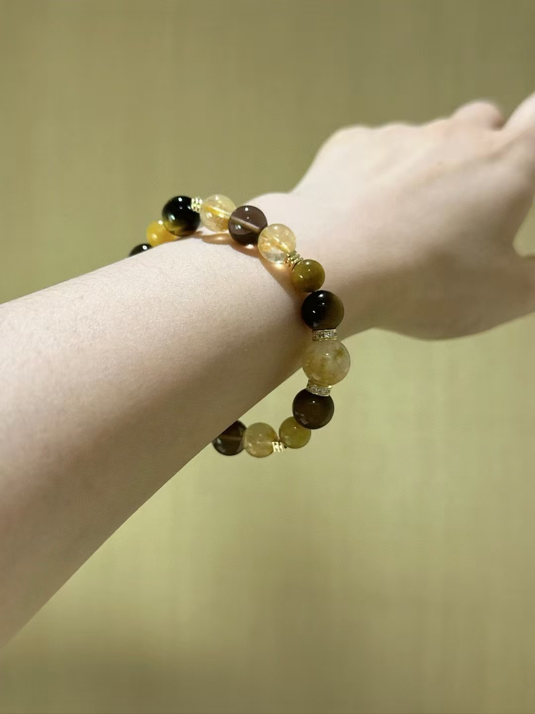 Yellow Tiger Eye and Golden Tiger Eye build firm belief, boost action, and cut through hesitation; Tea Crystal stabilises the mind, relieves excessive worry, and helps ease stress.